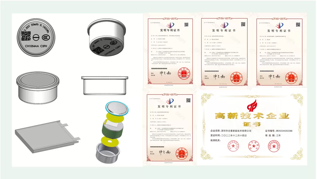 在电池技术创新方面,合壹新能业内独创了π型电池,工艺上采用钢壳封装+卷边封口+卷绕式极组。此外,合壹新能推进包括硅基负极、固态电解质等前沿技术的研发应用,在锂金属技术上,合壹新能采用SHES自愈合静电壳层机制,预置可以均匀化界面的锂离子流和静电屏蔽场,促进锂金属的均匀沉积。合壹新能还建立了干法电极工艺,创新粘结剂工艺,改进电池性能。目前,合壹新能已推出5C高倍率微型电池、高比能中小型电池,已有相关产品应用。